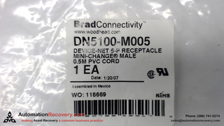 - BRAD CONNECTIVITY DN5100-M005, DEVICENET MALE RECEPTACLE, 1300390297