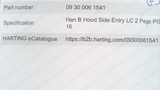 - HARTING 09300061541 , HAN B HOOD ENTRY LC 2 PEGS PG 16