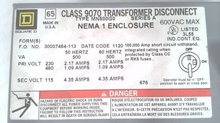 SQUARE D CLASS 9070 TRANSFORMER DISCONNECT
