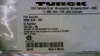 - TURCK RKM 578-3M SINGLE ENDED CORDSET, U0133-49