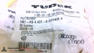 TURCK VB2-RS 4.43T-0.3/2FKM 4, MOLDED CORDSET, TWIN JUNCTION,