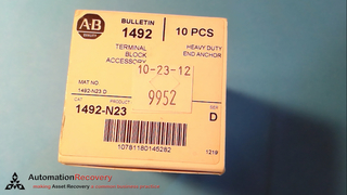 - ALLEN BRADLEY 1492-N23 SER D, HEAVY DUTY END ANCHOR TERMINAL BLOCK