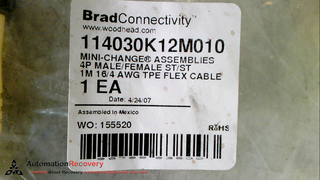 BRAD CONNECTIVITY 114030K12M010 FLEX CABLE MINI-CHANGE ASSEMBLIES 4POLE MALE/FEMALE ST/ST 1M 16/4 AWG