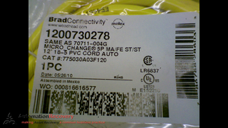 BRAD CONNECTIVITY 775030A03F120 MICRO CHANGE CABLE 5POLE MALE/FEMALE ST/ST 12FT 18/5PVC CORD AUTO