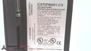 - GE FANUC IC670PBI001-CG, FIELD CONTROL BUS INTERFACE UNIT, 24VDC