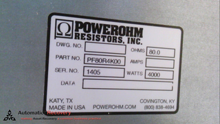 POWEROHM RESISTORS INC PF80R4K00, BRAKING RESISTOR, 80 OHMS, 4000W