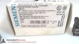 - SIEMENS 3SB3 648-6BA20-0CC0, INDICATOR LIGHT, AC METAL, ROUND, RED,