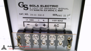 - SOLA ELECTRIC 28-48 240-0, POWER SUPPLY, 48 VDC, 4A, 115VAC, 60HZ